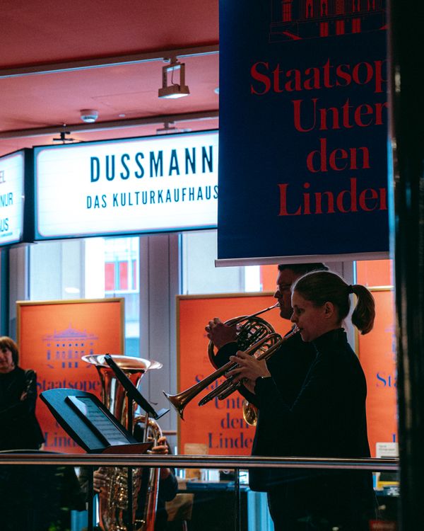 Am 19 Oktober fand ein weiterer Verkaufsoffener Sonntag bei Dussmann – Das Kulturkaufhaus zugunsten der Staatsoper Unter den Linden statt. Dank zahlreicher Einkäufe kam eine Summe von 27.500€ zusammen. Der Erlös des Tages kam in diesem Jahr der Jungen Staatsoper zugute. Die musikalische Gestaltung durch das Blechbläserensemble »Lindenbrass«, Kammermusiken der Orchesterakademie und musikalische Kostproben der Stipendiat:innen des Opernstudios hatten Kund:innen beim gemütlichen Stöbern die Gelegenheit, die Verbindung zwischen Literatur, Musik und Oper in ungezwungener Atmosphäre zu erleben. Wir danken Dussmann – Das KulturKaufhaus für die jahrelange, großzügige Unterstützung und Koorpertation. Wir freuen uns besonders auf den Verkaufsoffenen Sonntag im Jahr 2026, in dem diese besondere Veranstaltung 20-Jähriges Jubiläum feiert!